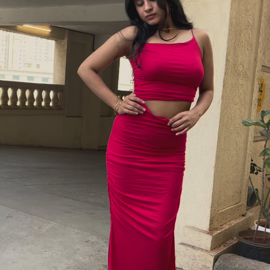 Make a bold statement with our Asymmetrical Cutout Red Midi Dress. This striking piece features a chic one-shoulder design that elegantly drapes over the shoulder, offering a contemporary yet timeless appeal. Crafted from a premium, stretchy fabric, it hugs the body in all the right places, highlighting the natural curves. The dress showcases a strategic side cutout, adding a touch of edginess, and a high slit for ease of movement and an alluring silhouette.
